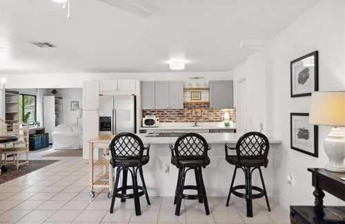 Getting around from your Palm Bay bungalow is easy! While a car is recommended for exploring the area, you'll find convenient access to major routes. Free parking is available on the premises. For those flying in, Melbourne Orlando International Airport (MLB) is approximately a 20-minute drive away. Consider ride-sharing services for transport to and from the bungalow and around Palm Bay. Explore the local area and nearby beaches with ease, knowing you have convenient options for your travel needs.