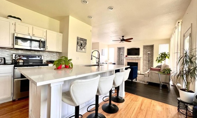 Welcome to our modern home, designed for both comfort and style. From the cozy living spaces and gourmet kitchen to the inviting bedrooms, every detail has been carefully planned to make your stay enjoyable. With convenient access to restaurants, stores, shopping, and entertainment. Experience comfort, convenience, and contemporary sophistication at our breathtaking modern home. Book your stay today and create unforgettable memories.