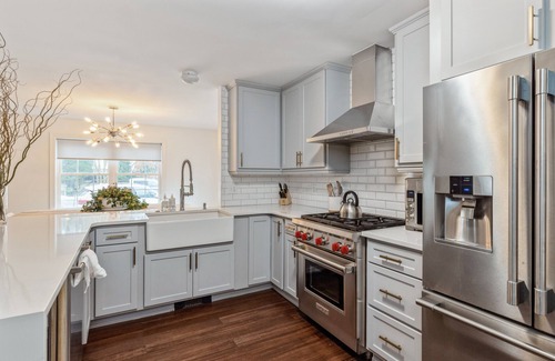 The home was purchased and enhanced with custom touches in the past year, including an open concept kitchen and professional landscaping. The home’s living spaces totals 3,400+/- square feet across three levels that gives a spacious feel for you and your guests to enjoy. Featuring two second floor ensuite master bedrooms, a brand-new open concept kitchen with a Wolf stove & oven and other top tier appliances. On the lower level there is a kitchenette / gym area equipped with a Peloton and free weights as well as two additional bedrooms and a full bathroom perfect for overnight visitors.
