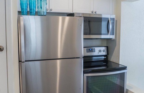 The kitchen has all new stainless steel appliances, marble countertops, and beautiful new cabinetry. The house also features an oversized laundry room that is perfect for storing all of your beach gear; there's also an outdoor shower for rinsing off after the beach!