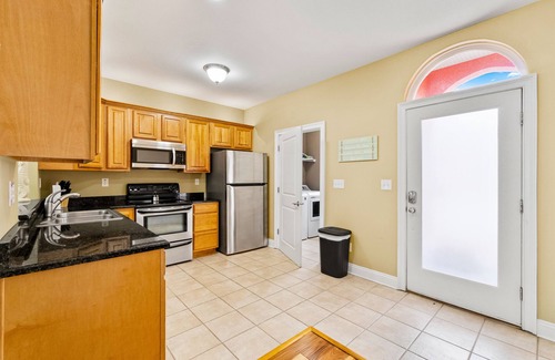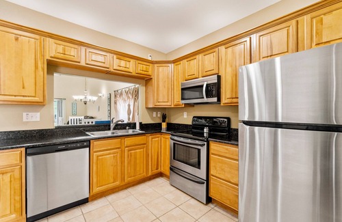 The interior is open, airy, and centrally air-conditioned, with a well-equipped kitchen and stainless steel appliances greeting you as you walk through the door. There's a washer/dryer to refresh your swimsuits, cable TVs in the living room and two bedrooms, and a smart TV in the large sleeping loft upstairs. Of the bedrooms, one is a primary suite with direct access to the patio.