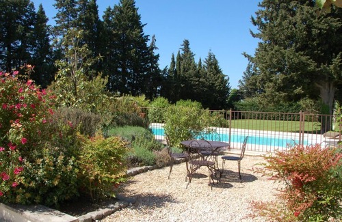 The house is a very comfortable 4-bedroomed holiday home with an additional separate Garden Suite annex with a king size bed, kitchenette and ensuite, that opens onto the pool area and garden. There is air conditioning in the Garden Suite annex as well as the 1st floor of the main house where the bedrooms are located, The well appointed kitchen within the main house leads onto a vine-covered terrace with views of the Vaucluse hills and private garden. The house has a lovely landscaped garden, ideal for children, and a large well-treed and fully-enclosed, secure pool area.