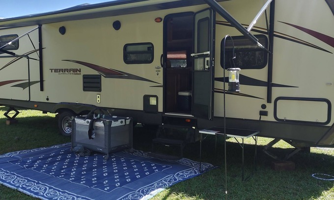 This travel trailer is located near multiple (at least 11) wedding venues, Tree Hoppers, Kumquat festival, Rattlesnake Festival, Scream-A-Geddon Horror Park, Snowcat Ridge, Seratoma Youth Ranch, and Bug Jam.