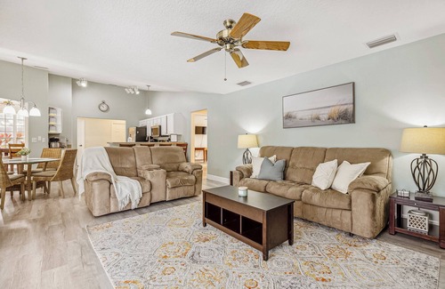 Escape to the Florida sunshine by staying at our coastal 3-bedroom rental minutes away from the beach, dining and shopping. This cozy and comfortable retreat promises a vacation like no other! Your friends and family can enjoy each day in the sun splashing in the heated pool and gathering in the lanai while grilling up your favorite meal on the BBQ.
