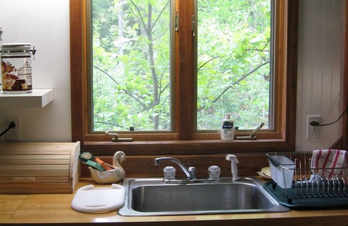 A one mile long dirt road wends its way through beautiful forest to arrive at Forever Wild on the shore of lovely Lake Titus in the northern region of the Adirondacks. 12 miles south of Malone and 40 miles north of Saranac Lake, this is a virtually traffic-free part of the Adirondacks. The renovated camp (new foundation, walls, hardwood floors, and furniture) has generous front and back decks, four bedrooms, and a third floor loft. With beautiful views to the lake, access is via a 75 foot path to a small dock. Lake Titus is one of the quietest lakes you will find in the Adirondacks. There are 2 mountains on the lake for climbing, and the south end has a swimming beach. Or, you can swim from a raft in front of the dock. The lake has bass for those who enjoy fishing, and the town of Malone offers one of the best golf courses in the north country, a Robert Trent Jones 36 championship hole golf course. Renters must bring their own bed linens and towels, but if this is not feasible, talk with the owner. We provide blankets, pillows, bedspreads, bathmats and kitchen linens.