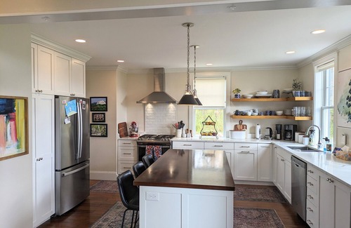 Gorgeous 3 bed/3 bath dream home in Ithaca, only 10 minutes from Cornell. We recently completed a gut renovation of an old farmhouse. Large open kitchen. Living room opens onto screened-in porch. Have your meals on the stone patio while enjoying panoramic views of the valley below, including horses from the farm next door. Sleeps 6.