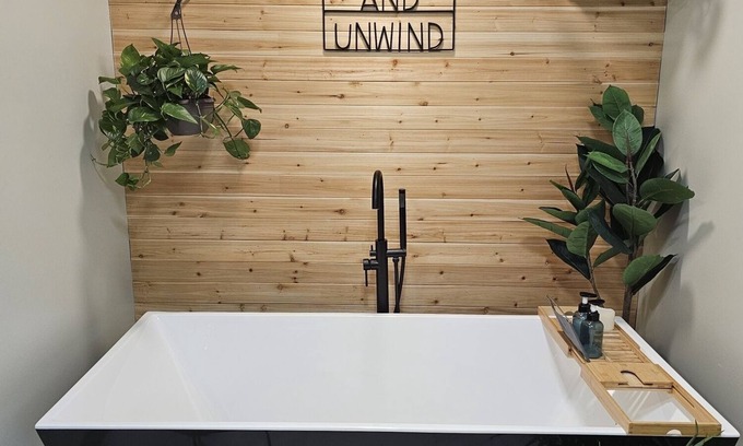Main floor bathroom with soaker tub (no standup shower in this bathroom) & washer & dryer.