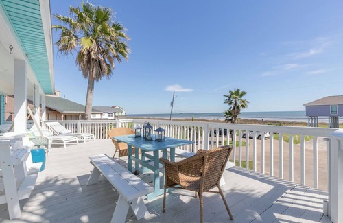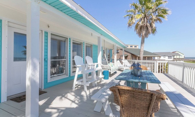 Nestled in the peaceful Karankawa Beach area, Pour Me A Vacation offers stunning front-row views at second-row prices! Whether you're sipping a fun drink on the porch swing, grilling in the covered downstairs area, or setting up backyard games like cornhole or a baby pool, our home is perfect for relaxing and making memories.