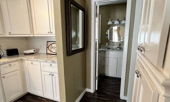 My family’s favorite place to stay. With custom built cabinets and updated appliances, this kitchen is home away from home. Step out onto a large balcony deck and enjoy your mornings and evenings overlooking the lake. The sunrise and sunset are stunning. There are deer everywhere and all kinds of birds. There is a (Roku) TV in the living room and wireless internet. Kitchen comes stocked with coffee and snacks. Walk down to the Core of Engineers and go fishing from the bank. Bring your canoe or use one of my paddle boards (must wear life jackets). So much ado right outside your front door.