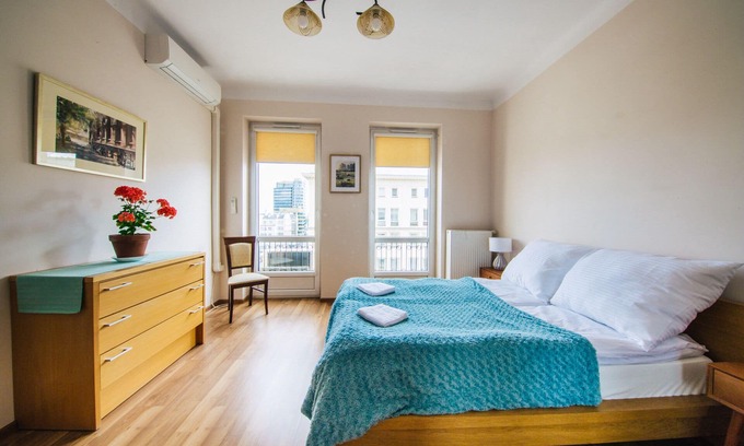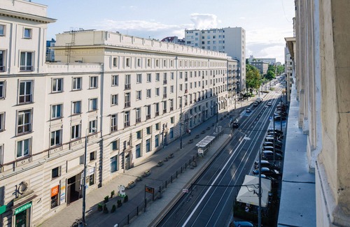 You are welcome to visit our apartment with an astonishing view of Warsaw. French balconies offer an outlook on the streets bustling with city life. The perfect location guarantees facilitated mobility around the city in every possible way.