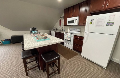 The Upper Rooms is a self contained apartment above our garage with it's own private entrance and deck. There is a large room for the living, dining and kitchen areas. There is one bedroom with a queen bed and a beautiful view of mountains and farmland. Another bedroom has a queen bed and a daybed. There is a third bedroom with a queen size bed. There is an awesome view from the dining area. Experience our beautiful sunrises and sunsets every day. Sit on our deck and enjoy the views and breeze. Watch deer in our yard and nearby fields. You are welcome to use the large swing set in the yard and gather your own eggs for breakfast.