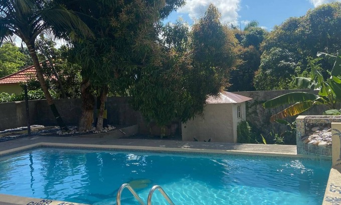 Spacious 4 bedroom Villa , Sleeps up to 10 guests. Great for families, we cater for events and celebrations. Gorgeous pool with lounge area to relax. Lush fruited gardens which guests are welcome to pick and enjoy. 5 minutes walk from Reggae Beach a scheduled scenic white sand beach. The property is situated opposite Tranquility Cove and is a 15 min drive to Ocho Rios with it popular attractions such as Dunns River Falls, Mystic Mountain, Dolphin Cove and many more