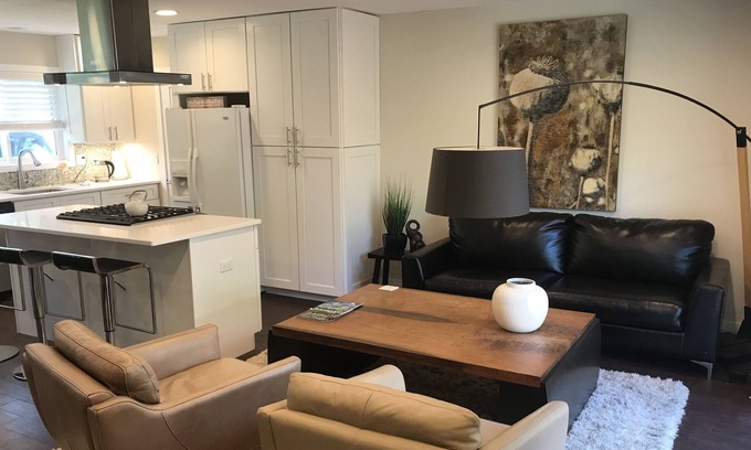 This beautifully remodeled home in West Linn is nestled on a quiet street near the Willamette River and backs up to the Mary S. Young State Park. This home features an open kitchen/living room floor plan, two bedrooms, one full bath, a separate office, and comfortably sleeps up to 4 guests. Cook in the kitchen and enjoy dining at the table or out on the sun-filled deck.