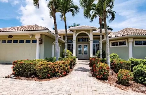 Welcome to The Cape House! Our stunning and beautifully maintained 4 bed/2 bath tastefully decorated home with gulf access and pool. The home sits on the Gelcys Canal close to the South Spreader Water way with no bridges allowing for sailboat access. This home is very spacious and ideal for entertaining with an open floor plan and a huge great room, kitchen, living and dining area. The great room has a wall of sliding glass doors leading out to an oversized lanai with kitchen, pool and spa. This home has a recently remodeled lanai kitchen with grill, induction cooktop, fruit trees and much more!