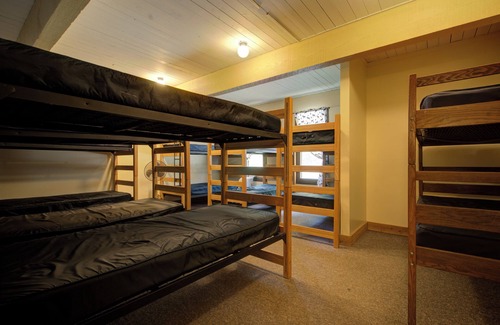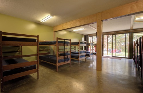 Beautiful Lodge in the heart of Hocking Hills featuring some of the most beautiful views in Fairfield County. The Geneva lodge is a simple layout with two bunk rooms upstairs that have adjacent bathrooms, with two showers and 3 toilets each. The great room has a fireplace, and is surrounded by sliding glass doors that lead out to a wrap-around deck. There is a large fire pit in the back and a quaint outdoor chapel area. This unit has two levels. The upper level sleeps 28 and the lower level sleeps 44 for a total of 72 beds. The lower level has two separate rooms with a bathroom that has one shower and toilet in each. Perfect for larger groups and retreats!