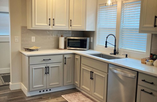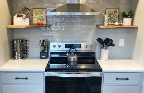 Plush beds and premium bedding appoint the three bedrooms. The main level boasts a king bed with en-suite bathroom, and the upstairs has a queen bed and two twin XL beds and another full bathroom. The home has been thoughtfully furnished with top end furniture and antiques along with perfect touches to make you feel at home. Our well-stocked kitchen invites you to cook or enjoy your favorite take-out. Stainless steel appliances, quartz counters, and plenty of storage adorn the kitchen. Custom bathrooms have magnificent walk in showers. Read a book, play a game, put together a puzzle or sit back and relax with the 55” Smart TV In living room or 40” Smart TVs in all bedrooms.