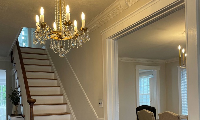 A sunlit enclosed porch with french doors welcomes you to the grand foyer. The first floor has a large family room, fireplace, large formal dining room, and newly renovated kitchen featuring all new appliances. Off the kitchen is an enclosed porch that can serve as a breakfast nook or a place to relax. The second floor features the primary bedroom with a walk-in closet and renovated high-end bathroom with a radiant towel warmer, a modern frameless shower with a spa-like shower head, and a fogless dimmable mirror. Also, you will find two additional bedrooms with a full bathroom upstairs. Our home has a finished basement with a powder room and washer/dryer for your use during your stay. We are so excited to host you in our lovely home and welcome any questions you may have! Please don't hesitate to contact us!