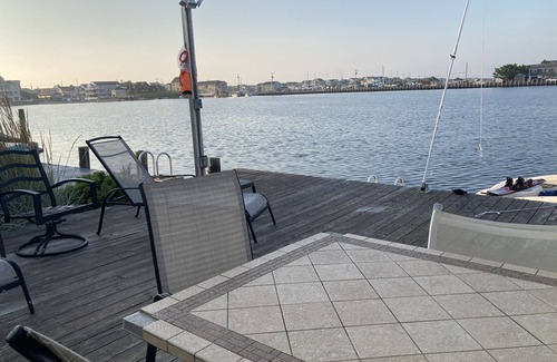 Enjoy the water right from your own Deck! Beautiful, spacious four bedroom home on the bay. Enjoy swimming, fishing, crabbing, and boating right from your home. Extra large inlet provides lovely views. Wake up to water views from your bedroom. Walking distance to the beach, bay front park, restaurants, shops, and the boardwalk.