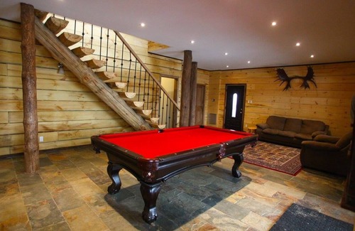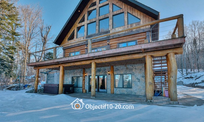 Beautiful construction custom built log home on a waterfront view. 8km to Morin-Heights and 15 km to St.Sauveur ski slopes, shops, restaurants, supermarket, bank,trails,public park and beach(5 min from the chalet). Equipped kitchen with stainless steel appliances and granite counters, two story living-room with wall of windows overlooking the lake and opening to a gorgeous full length of the house deck. The basement and main level have beautiful slate flooring with heating underneath.