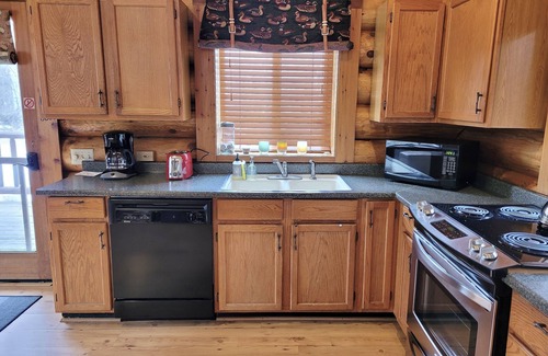 This cabin is a 2-bedroom, 2-bathroom townhouse cabin for a family or larger group of friends. The main floor has living area, kitchen and bath. There is a bedroom with one queen bed and a convertible twin bed. The living room contains a queen inner-spring futon couch which sleeps 2 persons comfortably. There is also a smart TV, DVD player, and selection of family movies, with limited local-channel television.Upstairs master bed/bath has a queen bed, and is very cozy and appropriate for two adults.