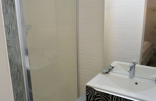 Bed and breakfast Vert ailleurs in Tavant provides 17 sqm of space for up to 2 guests. You have 1 bedroom with a double bed measuring 160x190 and 1 bathroom featuring an Italian-style shower with separate toilet. Created in spring 2018, this room combines traditional charm with modern features and offers independent access through an external wooden staircase. The space includes a glass door opening to the garden and a skylight that provides natural light throughout. Private amenities include WiFi and a baby bed for your use during your stay.