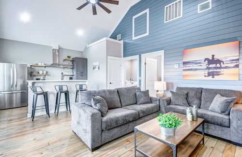 Renters Must Be 25 years of age or older to rent. This newly built home in The Villas at Rollover Bay has 2 bedrooms, 2 full bathrooms with tub/shower combo and can comfortably sleep 4 quests. There are 2 roll away cots to accommodate up to 2 extra guests if needed. The open kitchen / living room concept makes for easy entertaining and visiting with your guests. The kitchen is equipped with all the necessities needed to make meal prepping easy. This home has internet accessibilities to keep you connected, and to Stream your favorite TV shows and movies on the Smart TVs located in the living room and all bedrooms. Just enter the Password and Username located in the home. Outside you will be enchanted by the glorious sunrise and sunset views while sitting on the deck. Downstairs, there is a charcoal pit that will make the "Grill Master" in the family happy to fire up and grill something tasty for the family. This neighborhood also has a full playground for children to enjoy, as well as a swimming pool area that is available for your use. (Please follow all rules when using these facilities. There will not be life guards on duty at the pool area. ) When the sun and sand call out to you, you're a short vehicle, golf cart, or walk away from the shore! After a day at the beach, be sure to rinse off in the shower downstairs. Enjoy this bright, inviting home on the weekends or all year round!