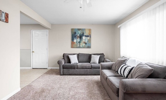Welcome to your cozy retreat in Beech Grove! This 3-bedroom, 1.5-bathroom home comfortably sleeps up to 6 guests. Situated in a quiet, family-friendly cul-de-sac, it's the perfect escape just 15 minutes from Downtown Indy. Enjoy amenities like a fully equipped kitchen, spacious bedrooms, and a fenced backyard with a BBQ grill.