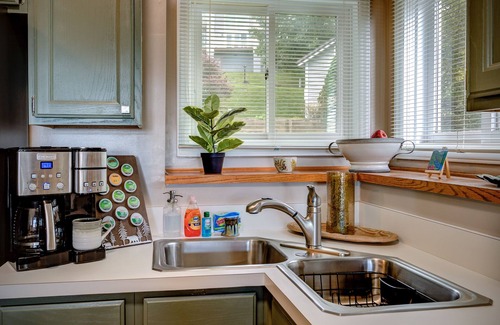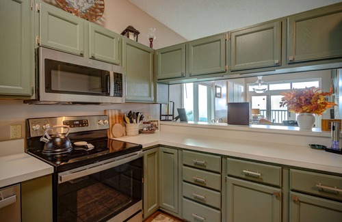 We have a full kitchen that includes a duel coffee maker for a single serve K-Cup or a pot of your favorite blend, a crock pot, and just about every spice you would need. Need more space? We also manage the condo right next door!
