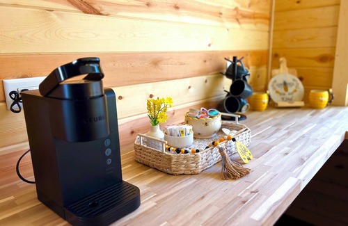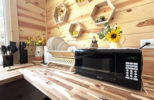 Welcome to our cabin, located on private property our cabin is built from two shipping containers, surrounded by nature and a pond. Inspired by the charm of beehive decor.