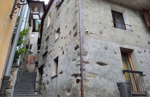 "Bel Panorama nel Nucleo", 4-room house 75 m2 on 2 levels, south-east facing position. Cosy and wooden furniture furnishings: living/dining room with open-hearth fireplace (only for decoration), cable TV, flat screen and electric heating. 1 double bedroom with 1 french bed (1 x 140 cm, length 200 cm), fan. Small kitchen-/living room (4 hot plates, oven, dishwasher, toaster, kettle). Bath/WC. Electric heating. Upper floor: 1 double bedroom with 1 french bed (1 x 140 cm, length 200 cm), fan. Exit to the balcony. 1 double bedroom with 1 french bed (1 x 140 cm, length 200 cm), fan. Wooden floors. Small balcony 6 m2, south-east facing position. Balcony furniture. View of the lake and the mountains. Facilities: washing machine, hair dryer. Internet (WiFi, free). Please note: non-smoking house, no parking. 1 small pet/ dog allowed. NL-00006715