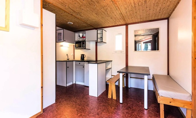 Details: Beach Access : 200 m Wi-Fi access : 2€ / day / 2 equipment at 20€ / week / 5 equipment - to be paid on site Playground for children : Yes - Pined side Teen animation : Junior Club (11/13 years old) and Teens (14/17 years old) - located at Club Pinede at 300m - open from 28/06 to 30/08/2025 Children's animation : Club Renardeaux (3/5 years old) and Les Pirates (6/10 years old) - located at Club Pinède at 300m - open from 28/06 to 30/08/2025 Family animations : cinema, cabaret, nightclub atmosphere - located on the pine forest at 300m - all season Sports animations : fitness classes, sports tournaments, aquagym, swimming lessons, lessons LES'MILLS, Pets not allowed Deposit (in supplement) : 250 Safe Final cleaning fee : from 59€ / accommodation - to be paid on site Baby Kit : free - to subscribe at time of booking Maintenance kit : From 7.90 to 9.90€ / kit (1 dishwashing liquid bottle + 1 multi-cleaning bottle + 1 textile liquid laundry bottle + 1 sponge with green buffer + 1 washer + 10 dishwasher tablets) - to be adjusted on site Laundry kit : 7.50€ / kit (1 towel and 1 bath cloth per person + 1 bath mat) - to be set on the spot Laundromat : Washing machine : 6€/ (with laundry) / Dryer : 4€/ Bedding : provided (not made on arrival, except for Premium accommodation) Towels : 3.50€ / towel, 4.50€ / bath sheet - to be set on site (provided for Premium accommodation) Number of stars Car park : free bowling Ping Pong Swimming pool : outdoor of 188m2 with paddling pool of 42m2 - free access to opening hours (to be consulted on site) - open all season Near airport : Bordeaux-Mérignac Airport #BOD (150.2 km) Restaurant : restaurant with covered terrace - bar with terrace by the pool - pine forest only (300m) Tourist tax (surcharge) : to be paid on site, at current rate Television : included in housing Tennis : 1 short Multisports ground : volleyball Coffee maker Microwave oven Number of bedrooms : 2 Number of double bed : 1 Number of single beds : 2 Number of pieces : 3 Number of toilets : 1 Number of bathroom : 1 Cooking plate Fridge Surface (m²) : 20 Television