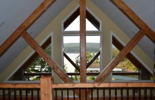 You can launch your boat less than a mile away at Devil’s Fork boat launch. If you wish to rent a boat or Jet Ski, Lacey’s Narrows Marina is only three miles away. Once you have your boat in the water, you will enjoy having it docked in a slip just a short walk away from the cabin. The Cabin has two bedrooms downstairs and a large loft bedroom upstairs. Bedroom one has a Tempur-Pedic king bed with private bathroom including a tub/shower unit. Bedroom two has another Tempur-Pedic king bed and adjoins the hall bathroom including a tub/shower unit. Guests are provided with towels and wash cloths for your convenience. The upstairs loft bedroom has one king bed and two twin beds. Each bed was carefully chosen to ensure comfort for our guests. The laundry is off the hall on the first floor and includes a full size washer and dryer. The two story living room has a couch, love seat and recliner with a large flat screen TV mounted to the two story gas fireplace. The kitchen has granite counter tops and stainless steel appliances. The kitchen has a peninsula bar that is 11 foot long and great for buffet style serving. The peninsula bar has seating for 4 in addition to the dining table that seats 6. In the kitchen, renters are provided with fiesta dinnerware, pots/pans, silverware, glasses, etc to allow guests to prepare meals in home. The entrance to this unit is up one half of a flight of stairs, so it is not easily accessible by wheelchair. Please, note that pets are not allowed. We know this won't work for everyone, but we cannot allow you to bring pets with you.