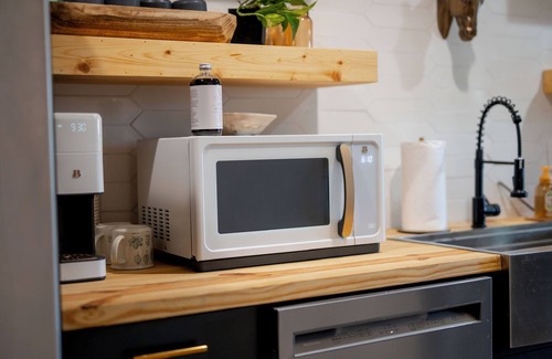 Guests will find a quaint living space and bathroom with a large walk-in shower, as well as a kitchen area and eating space. Upstairs, the loft offers a queen-size bed, while the floor-level couch unfolds to sleep one person comfortably.