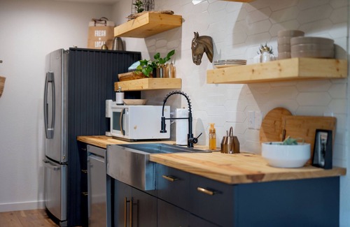 The home has an undeniable treehouse feel with large windows that display the beauty of the outdoors. Much intentional effort has been made to bring the outside in and ensure guests are immersed in their natural surroundings. From the area’s wildlife to local vegetation, Belle House pays homage to Northwest Arkansas in the details.