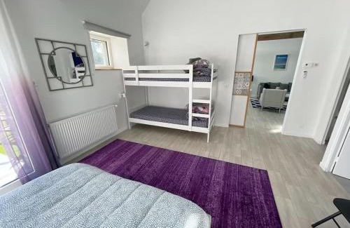 Providing inner courtyard views, Belle maison de campagne d'architecte, pétanque et rando, plages à 5 min! in Plestin-les-Grèves features accommodations, a garden, barbecue facilities, and a shared lounge. This property offers access to a patio, table tennis, free private parking, and free Wifi. The property provides services including meeting and banquet facilities and evening entertainment. The villa provides guests with a terrace, garden views, a seating area, satellite flat-screen TV, a fully equipped kitchen with a dishwasher and an oven, and a private bathroom with shower and a hair dryer. A microwave, a toaster, and fridge are also provided, as well as a coffee machine and a kettle. At the villa complex, every unit includes bed linen and towels. For guests with children, Belle maison de campagne d'architecte, pétanque et rando, plages à 5 min! offers indoor and outdoor play areas. A bicycle rental service is available at the accommodation, while walking tours and bike tours can be enjoyed nearby. Plage De St Efflam is 1.4 miles from Belle maison de campagne d'architecte, pétanque et rando, plages à 5 min!, while Saint-Samson Golf Course is 17 miles away. Brest Bretagne Airport is 42 miles from the property.