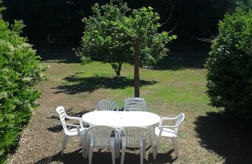 Garden apartment on the ground floor of a villa comprising 1 fully equipped kitchen with washing machine, fridge / freezer, microwave, living room with sofa bed and TV, 2 bedrooms and 1 bathroom.