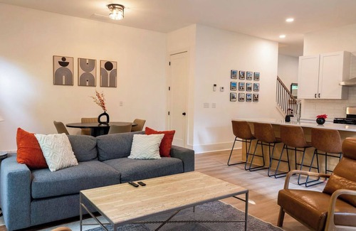 Relax in this calm, family-friendly 3-bed, 3-bath home equipped with a queen pull-out couch bed to ensure comfort for your entire party. Enjoy fenced backyard with covered outdoor seating, a game room with pool table and more. Located minutes from the Beltline, bars, restaurants, Mercedes-Benz Stadium, State Farm Arena, Zoo Atlanta, and the Aquarium—crafted for both tranquil family stays and fun group getaways.