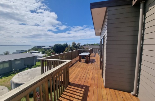 Wake up to the glorious sight of sparkling blue seas and clear blue skies at Belvedere - your new home away from home in Cable Bay. This four-bedroom holiday home is a modern and well-appointed home base in this charming seaside town. The views from the deck across Cable Bay and the Karikari Peninsula are truly spectacular. Relax here over a BBQ dinner and enjoy quality time with your group as the sun goes down - holiday bliss! Enjoy all the comforts of home, and then some, with Wi-Fi to share your holiday snaps, Chromecast to watch all your favorite shows from your personal device, and a Nespresso coffee machine for your daily fix. Belvedere is in a peaceful location with a direct road to stunning Cable Bay beach just six minutes walk away. You're also a 2-minute drive or 10-minute walk to Cable Bay shop, where you can indulge in classic Kiwi summer fare of ice cream and delicious fish and chips. Views galore and a laidback lifestyle await at Belvedere!