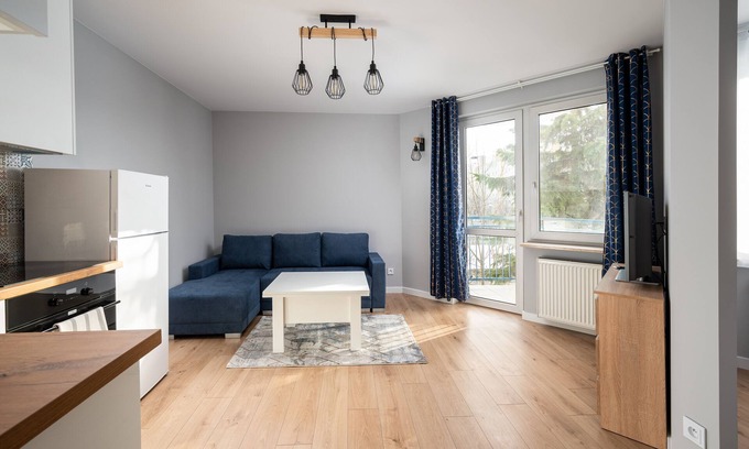 Bemowo Lazurowa Chic Apartment is an exceptionally cozy apartment that features a living room with a sofa bed and a kitchenette, a bedroom, a bathroom, and a spacious balcony where guests can relax and enjoy their morning coffee or an evening glass of wine. Guests have access to a range of practical amenities, including free WiFi, terrestrial television, washing machine, iron, hairdryer, refrigerator with a freezer, dishwasher, oven, and kitchen accessories.
