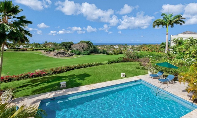 Ahead is a large pool with a spacious deck area surrounded by a mature garden, overlooking the fairway and a wonderful view of the Caribbean Sea.