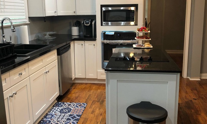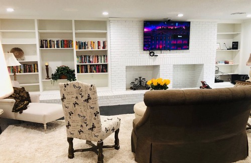 An entire house is available for an individual up to a family of six. The clean decor is modern yet traditional, with a full functioning kitchen, large family room with a writing desk and 65” television with Roku streaming.