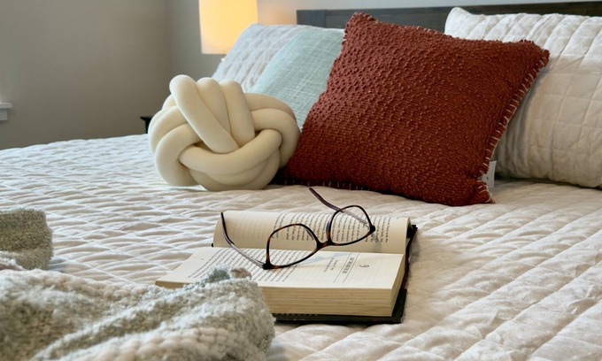 King-size bed with blackout curtains & Smart TV (guests love the restful sleep).