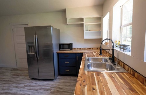 Renovated 150+ year old farmhouse with 3 bedrooms, 2 baths, and historic charm. Enjoy a gas stove, propane furnace, and gas logs for cozy winter nights. Primary bath features a jetted soaker tub. Relax by the fire pit or explore nearby Oneonta and scenic trails. Plenty of parking for trucks and trailers—perfect for families, couples, or travelers with extra gear. For the drinking water lovers, we have reverse osmosis water filtration.