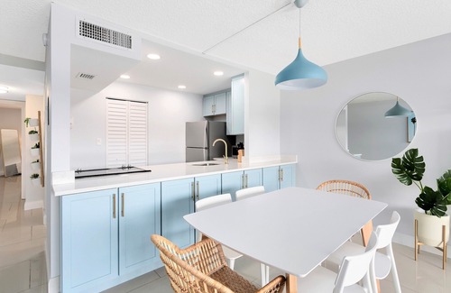 Tastefully designed and renovated, this perfectly located Cocoa Beach condo is characterized by a relaxing, chic theme with plenty of natural light and minimalist aesthetics.