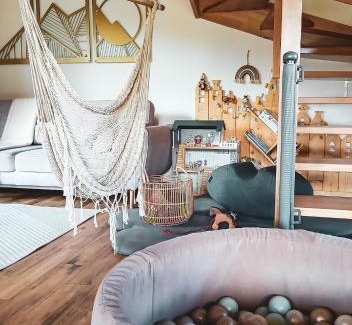Providing a garden, Beskidzka Kępa Szczyrk - domek z balią i pięknym widokiem na góry provides accommodations in Szczyrk. The property is around 1.4 miles from COS Skrzyczne Ski Centre, 12 miles from Bielsko-Biala Railway Station, and 12 miles from Bielska BWA Gallery. There's an outdoor fireplace and guests can use free Wifi and free private parking. Featuring a terrace and mountain views, the spacious chalet includes 2 bedrooms, a living room, flat-screen TV, an equipped kitchen, and 1 bathroom with a hot tub and an a bath or shower. Towels and bed linen are available in the chalet. This chalet is allergy-free and non-smoking. For guests with children, the chalet features an indoor play area, outdoor play equipment, and a baby safety gate. Skiing is possible within the area and Beskidzka Kępa Szczyrk - domek z balią i pięknym widokiem na góry offers ski storage space. Museum of Skiing is 16 miles from the accommodation, while eXtreme Park is 22 miles from the property.