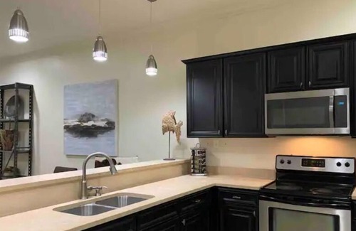 This condo is on the 4th floor just steps away from the elevator. The unit has 3 bedrooms - the master with a king-size bed, one guest room with a queen bed and twin bunks, and the other guest room has a queen bed. Enjoy football games and movie nights in the living room on the new sectional sofa. The dining area has a large table that seats six as well as four barstools at the kitchen counter.