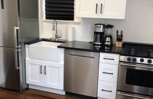 There are 2 separate apartments available for you in this home. This apartment "which we call the garden apartment" is the first floor apartment and is slightly lower cost than the upstairs apartment, and the upstairs apartment "which we call the Urban Suite" . Both have a similar appearance and decor but the upstairs has even more upgrades and a better living room/second bedroom arrangement for groups with more than 2 adults (search property ID 1368909) , or you may rent the entire home and connect both apartments to make 1 large home for a large group or family (search property ID 1453361). The home has been completely renovated in 2018 and everything is brand new.