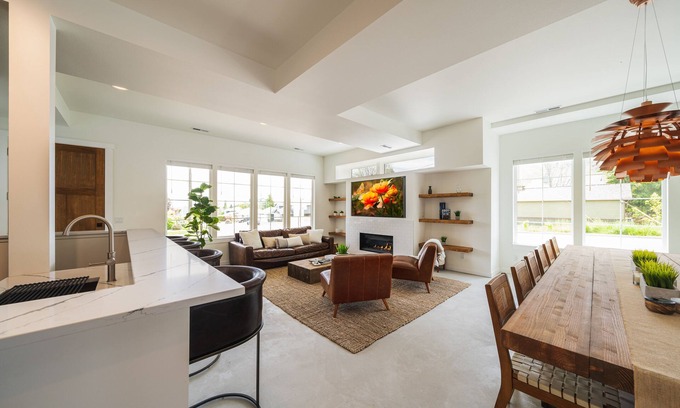 4 Bedroom, 4 Bath designer home. If you're looking for the far and away best vacation rental in Wenatchee, you've found it! We built this house from the ground up with vacation renting in mind. The primary bedroom/bathroom suite is unlike any place in Washington and is modeled off of a luxury hotel located in the mountains of Oman. The open concept living/kitchen area has seating for 12, both inside and out on the deck. There are two gas fireplaces inside and a large bar area that make this home the perfect getaway.