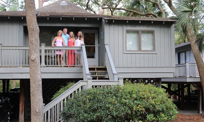 Our NEWLY RENOVATED, lovely cottage on the cul-de-sac in Sparrow Pond is conveniently located in West Beach with only a seven-minute walk to the ocean, five minute walk to the private pool, and Cougar Point's beautiful new clubhouse (includes a great casual restaurant)is only a quick one minute walk and is one of the five golf courses available for you to play on the island. Enjoy a leisurely three mile bike ride to Freshfields marketplace past the beautiful marsh where you will can stroll the many shops and restaurants and enjoy the outdoor movie nights. Our renters often comment that we have the BEST LOCATION on the island!