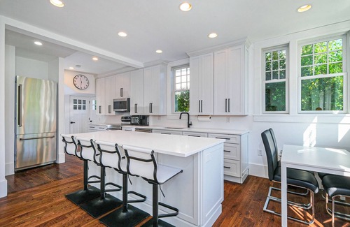 Cozy and inviting 4 BDR close to everything. Walk 5 min to downtown Rye, restaurants, bars, or Metro North train (only 40 minutes to NYC). Enjoy a delicious Starbucks coffee, charming cafe dinner or Longfords homemade ice cream on a stroll through town. Schools are "walking" close too! Totally remodeled with all new kitchen, appliances, and bathrooms. All new furniture. 3 Kings and 1 Queen bed. Use your 4th BDR as a remote work space, nursery, or sitting room. Black Out shades in all Bedrooms. New Central AC and Heat. Playroom or Remote workspace in redone basement. Lots of extra tables and chairs for gathering. Two Beautiful New Heat & Gloves Gas fireplaces to keep you warm on cool nights. New 65" Flat Screen on FR wall. FIOS Wireless WIFI and TV. Throw your keys in the drawer and enjoy this fun spacious home and incredible location. Remodeling? Visiting Family or Friends? Business Meeting? Trying out the Suburbs?